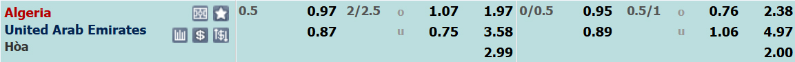 Kèo phụ hấp dẫn: Xỉu góc - Theo thống kê, 8/10 trận gần đây trên mọi đấu trường của UAE chỉ có tối đa 8 phạt góc cả trận. 6 trận gần nhất của Algeria cũng có kết quả tương tự.