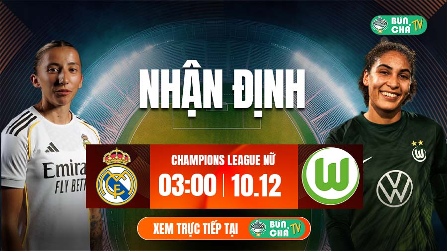 Nữ Real Madrid tiếp đón Nữ Wolfsburg trên sân nhà vào rạng sáng 10/12, trong khuôn khổ lượt trận thứ 5 vòng bảng Cúp C1 Nữ châu Âu 2025/26.09:03 - 09/12/2025