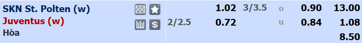 Nữ Juventus được xếp ở cửa trên với tỉ lệ 2 1/4:0 nhưng không đáng tin ở trận đấu đêm nay bởi sau 4 lượt trận, họ mới chỉ ghi 4 bàn. Bên kia chiến tuyến, nữ St Polten đã thắng kèo châu Á ở 2/4 lượt trận, có thể gây khó khăn cho các ông lớn khi bị đánh giá thấp.