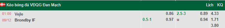 Tựu trung, Brondby được dự đoánsẽ giành chiến thắng sát nút để tiếp tục cuộc đua vô địch, đẩy Vejle chìm sâu vào khủng hoảng.