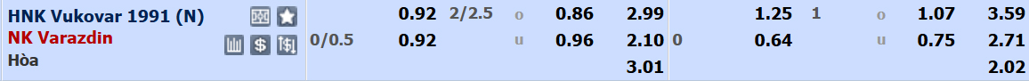 Varazdin được xếp ở cửa trên với tỉ lệ 1/4:0 nhưng không đáng tin bởi họ chỉ thắng 2/8 trận sân khách ở giải VĐQG Croatia mùa này. Trong khi đó, Vukovar đã thắng kèo châu Á ở 7/8 trận sân nhà đã đấu.