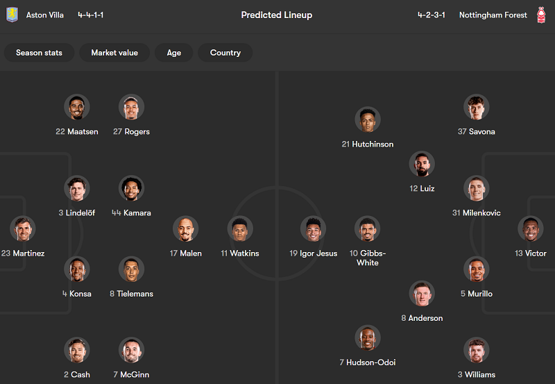 Thông tin trận đấu Aston Villa vs Nottingham Forest