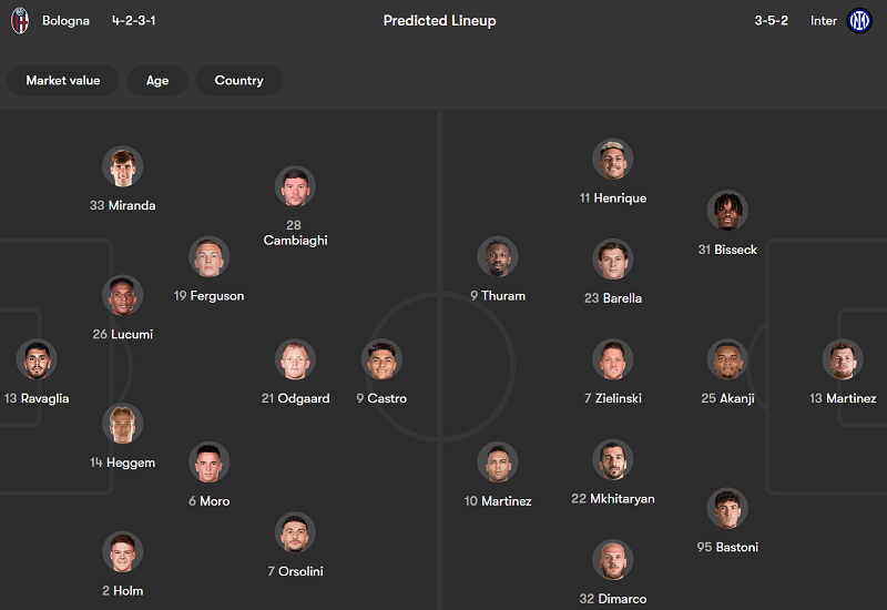 - Bologna: Remo Freuler chưa bình phục chấn thương; Nicolo Casale chưa chắc chắn về khả năng ra sân.