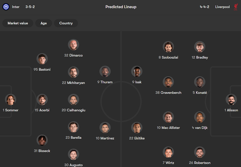 Tương đối bất ngờ khi Inter Milan chấp Liverpool tới 0,5 trái. Tập thể do HLV Arne Slot dẫn dắt dù sao cũng là đương kim vô địch Premier League và thắng tới 7/8 trận thuộc giai đoạn League phase giải UCL mùa vừa qua.