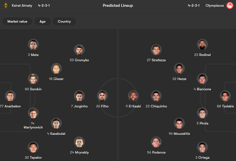 Không bất ngờ khi Olympiacos được đánh giá cao hơn đáng kể. So với Kairat Almaty, Olympiacos chắc chắn vượt trội về tham vọng, chất lượng cầu thủ cũng như kinh nghiệm tham dự UEFA Champions League.