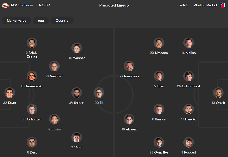 Thông tin trận đấu PSV vs Atletico Madrid
