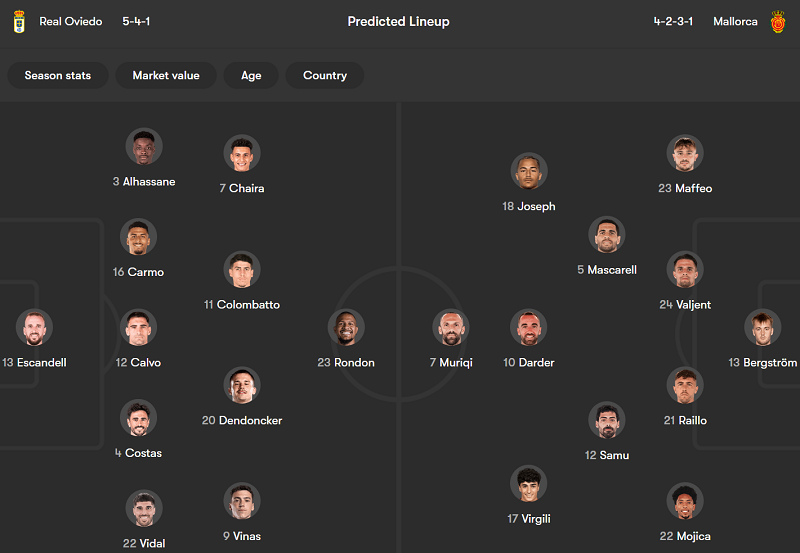 - Real Oviedo: Jaime Vazquez và Alvaro Lemos chưa bình phục chấn thương; Luka Ilic, Javi Lopez và Brandon Domingues chưa chắc chắn về khả năng ra sân.