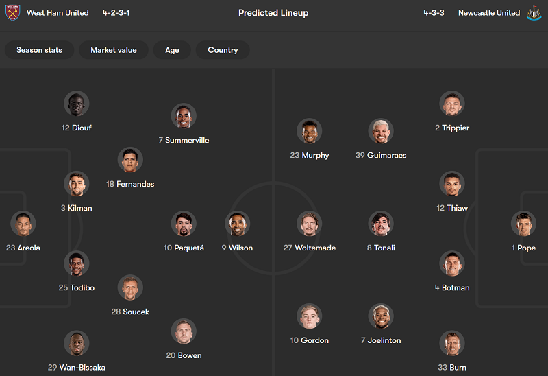 The Hammers chỉ sở hữu 4 điểm: thắng 1, hòa 1, thua 7. Newcastle thắng 2/3 vòng đấu vừa qua, lần lượt trước Nottingham Forest (2-0, sân nhà) và Fulham (2-1, sân nhà). The Magpies hiện có được 12 điểm cùng vị trí thứ 13 trên bảng xếp hạng.